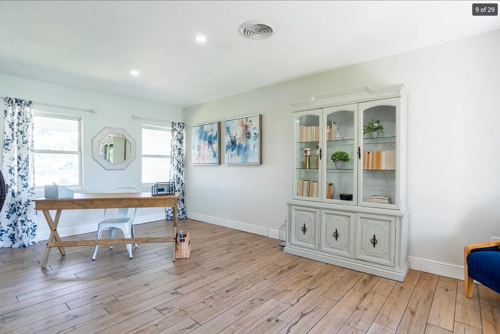 Welcome to your private lakeview sanctuary in the heart of Conway! This beautifully remodeled 3-bedroom, 2-bathroom home features a spacious open-concept living area with a dine-in kitchen. With wood-look tile and laminate flooring throughout, the home combines cozy farmhouse charm with modern convenience. Enjoy serene views of the large backyard and peaceful lake from the comfort of your living room. Nestled in a quiet, centrally located neighborhood just 15 minutes from both Downtown Orlando and Orlando International Airport, this Conway gem offers rare charm including the neighborhood's resident wild peacocks! Please note: There is a smaller guest unit located on the left side of the home that is rented separately. Lawn-care and WIFI are included. Tenant pays for their portion of utilities. Pets negotiable. No smoking allowed. Minimum lease term: 1 year.