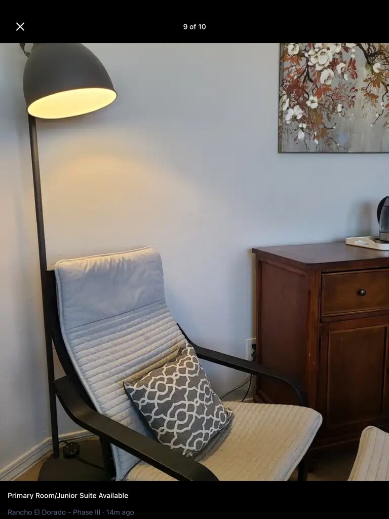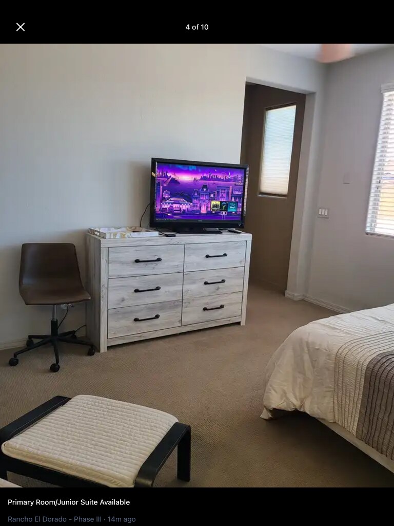 Lovely unit at the back of main house This was originally the primary suite Own entrance Own bathroom Large walk in closet Parking for one car on the drive Would like to rent to one lady only please Brand new queen mattress Brand new mini/ minimal appliances Microwave/ Breakfast Centre/ tea kettle Brand new Fridge freezer All utilities included including Wi-Fi Proof of funds required This is a Non smoking No drugs home No pets please ( we do have two small dogs in the main house) Lovely area The property is on a large corner lot next to a park No neighbors on three sides The rental will be kept private from the main house to keep our privacy Use of back yard Please let me know if you’re interested r have questions Thank you Not sure of the exact size of room but had to add a number