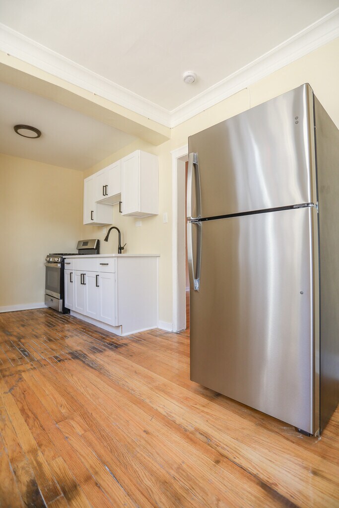 1 Bed newly rehabbed apartment. New Kitchen with soft close cabinets, new stainless steel appliances, large pantry space. Updated Bathroom with white subway tile, next vanity, toilet, and modern fixtures. Hardwood floors. Great closet space, 3 throughout the unit. New light Fixtures throughout. Laundry Room on premises. Heat Included. $600 one-time move in fee. Cats and dogs are allowed. $35 per month plus $10 per additional pet. Hands on owner/management company and we pride ourselves on providing well managed and well maintained building.