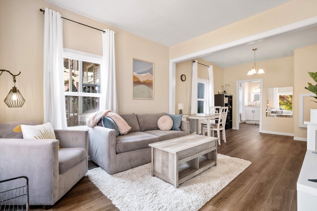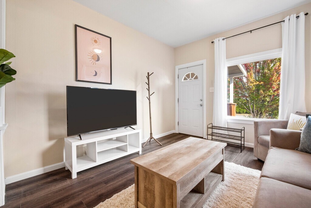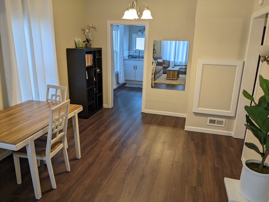 This fully furnished, two bedroom house (with recent updates to flooring throughout and bathroom) comes fully equipped with Washer/Dryer, full kitchen, TV, internet, a fully fenced backyard, and a bus system a short walk away taking you to every major medical center (or the train to Seattle). Grocery stores and restaurants are only a 5 minute walk and the downtown area for nightlife and business are only 3 miles north.