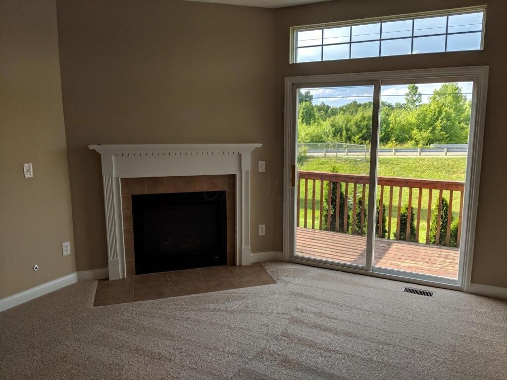 Stunning Three Story condo features main floor generous Office Space and Contemporary Angled Living Room and Gas Fireplace. Plus, relax right off the Living Room onto the Deck overlooking the scenic courtyard. Enjoy the Big Beautiful Kitchen that showcases gorgeous Wood Cabinetry, Stainless Steel appliances, granite countertops and center island. There is also a half bath on the main floor. Upstairs, the Two Large Bedrooms includes Spacious Master with an Attached En Suite Bathroom accented by Double Sinks and generous closets. Finished lower level can be used as a third bedroom or an additional family room, substantially expanding living and entertaining space. The 1 car attached garage has additional storage space. Located close to Easton, airport and easy access to freeway. It is a large size condo close to 1800 sq feet. Gahanna schools.