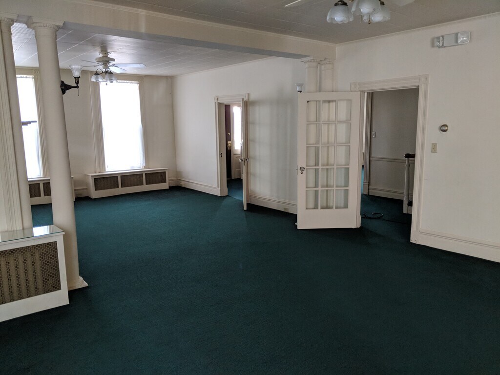 Discover this huge 3-bedroom apartment full of charm and character, in a beautifully maintained historic building. This unique home features a lovely side porch just off the living room—perfect for relaxing. Enjoy the convenience of a private laundry room with washer/dryer hookups, and additional storage. The property also includes a 2-car garage. Outdoor enthusiasts will love the nearby hiking and biking trail. Located in a quiet small town, this property offers peace and privacy while still being just 10 minutes from Huntingdon and a 30-minute drive to State College or Altoona. Features new mini-split systems for efficient heating and cooling.