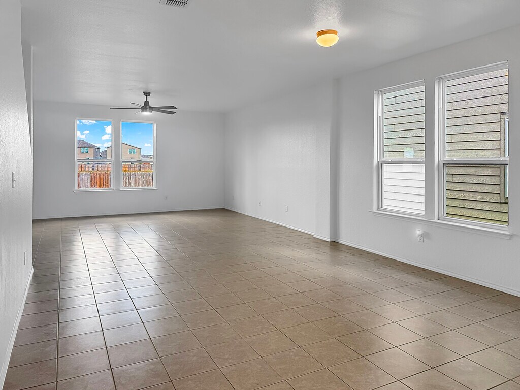 Located in Elley Crossing, this two-story home is packed with desirable features. An open-concept layout creates a seamless flow between the living, dining, and kitchen areas. A downstairs office with glass French doors provides a quiet workspace, while a full bath and fourth bedroom on the main floor are perfect for guests. The large, well-equipped kitchen and living area create an ideal space for gathering. Upstairs, the master suite and two secondary bedrooms surround a huge game room, and the utility room is conveniently located nearby. Notable upgrades include a water softener and solar panels. The home also offers a covered patio and a large, fenced backyard. Smoke free. Pet restrictions apply (max two pets, breed/weight restrictions, pet deposit/rent required).