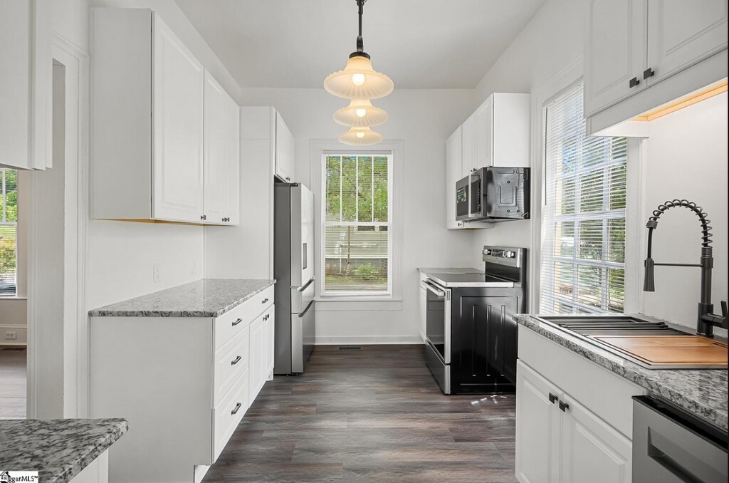Overview - Charming historic home with high ceilings and generous room sizes. - Fully renovated in 2025, with updated systems and stylish finishes. - Short-term lease available (less than 12 months). - Two large bedrooms, two full bathrooms, spacious living and dining rooms, and a sun-room. Key Details - Type: House (historic) - Bedrooms/Bathrooms: 2 bed / 2 bath - Size: Large rooms throughout (living, dining, bedrooms) - Lease: Short-term available (less than 12 months) - Renovation: Fully renovated in 2025 - Heating/Cooling: Central heat and air - Parking: side and front driveway areas Highlights - Large, light-filled spaces: big living room, big dining room, and two large bedrooms - Modern comfort with historic charm: new kitchen and appliances, new washer/dryer - Ambient lighting: beautiful lighting and lighted built-in shelves - Cozy and stylish: new electric fireplaces in all major rooms - Outdoor and entry: nice large front porch - Roof: new architectural shingle roof - Sun-room: bright, versatile extra space - Pet policy: pets allowed with size and breed restrictions Property Details - Living areas: Large living room with electric fireplace; adjacent dining area for entertaining - Kitchen: New kitchen with modern appliances - Bedrooms: Two large bedrooms with ample closet space - Bathrooms: Two full bathrooms (updated) - Laundry: New washer and dryer included - Sun-room: Access or bonus living space (bright, versatile) - Lighting and storage: Beautiful lighting throughout; lighted built-in shelves for display and storage - Storage: Storage building on the property - Outdoor spaces: Large front porch for relaxing and entertaining - Pet policy: Pets allowed with size/breed restrictions - Accessibility: (optional) Note if any accessibility features exist Neighborhood & Location - Walk to downtown; two blocks from Main Street - Close to restaurants, shopping, and local amenities - Neighborhood vibe: historic charm with convenient urban access Lease & Terms - Lease term: Short-term available (less than 12 months) or 12 month lease. Pets - Pets allowed with size and breed restrictions