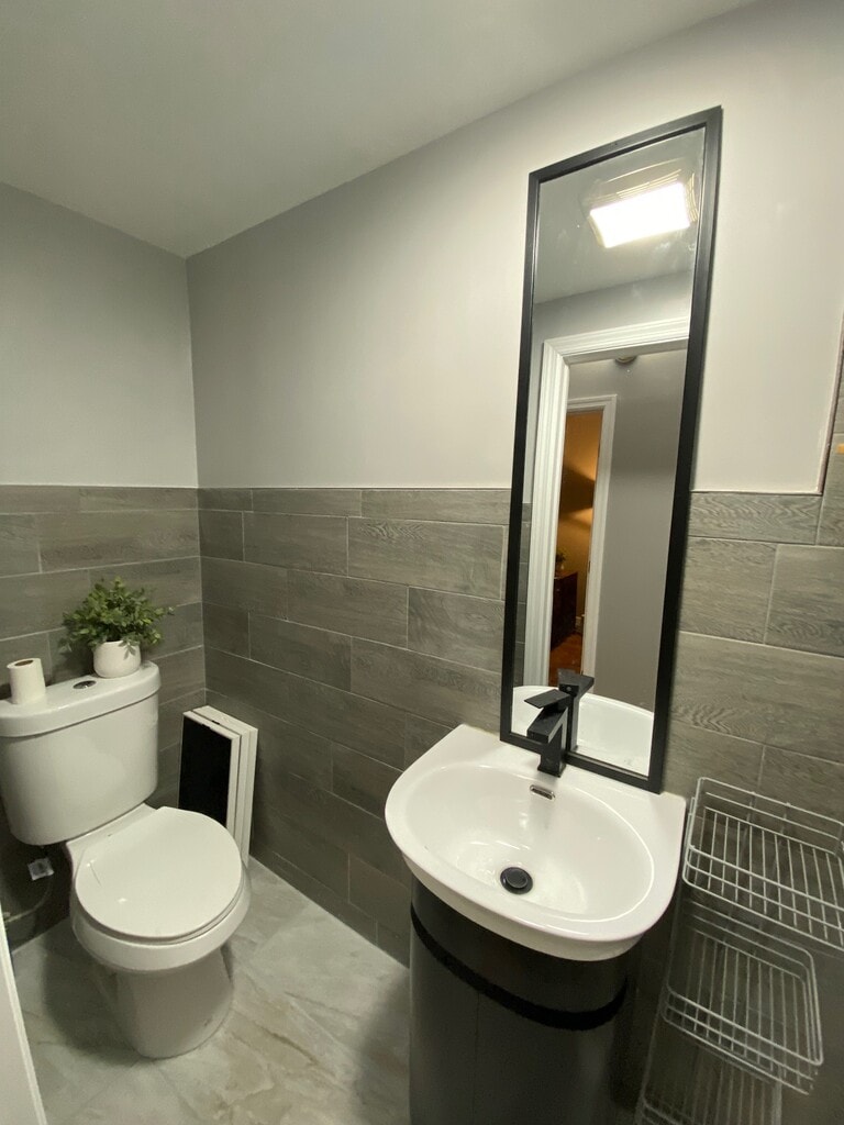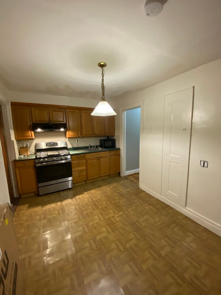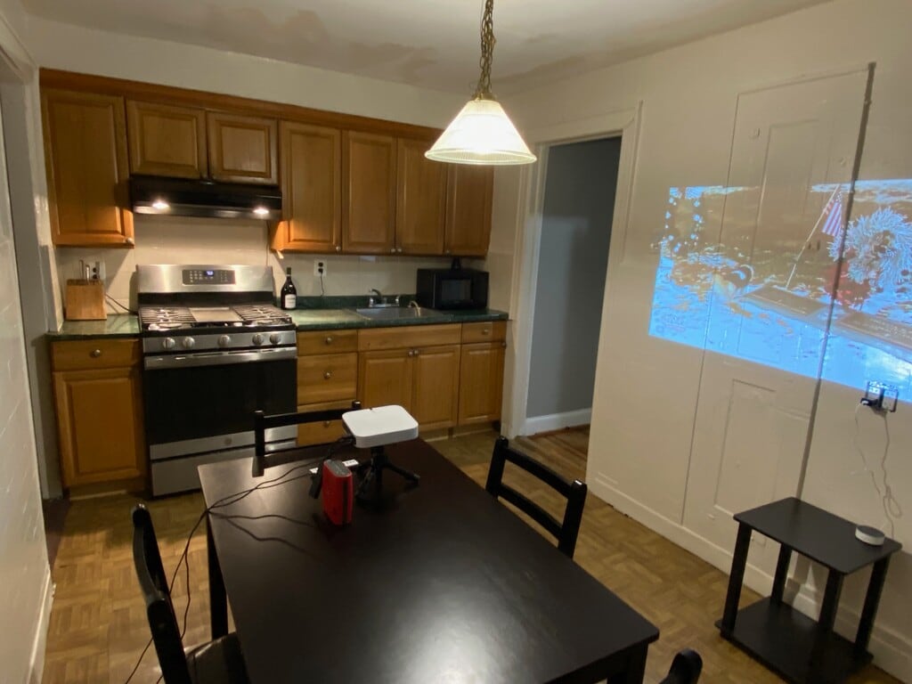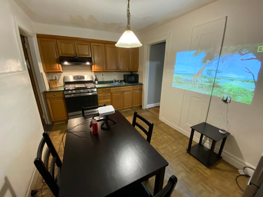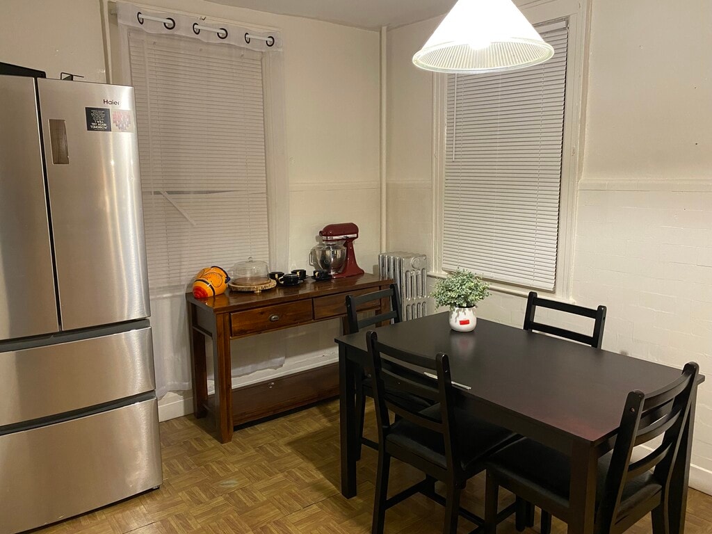 A family brown stone ground floor two bedroom apartment with dining/eat in kitchen, new full size front living room, two bedrooms, new bath room , newly built bedroom. Tree lined family streets. Quiet, safe night and day with a very quiet big family housed neighborhood. Close to super laundromats, 5 mins walk to Baychester shopping plaza. 9 mins walk to No. 2 trains, and to MTA metro north train(Woodlawn) , close to BX 11 Manhattan, mixed schools, express bus. House is old brown stone home with garden in front and garden on walk way. Large front windows, with all side automatic night lights and security cameras.