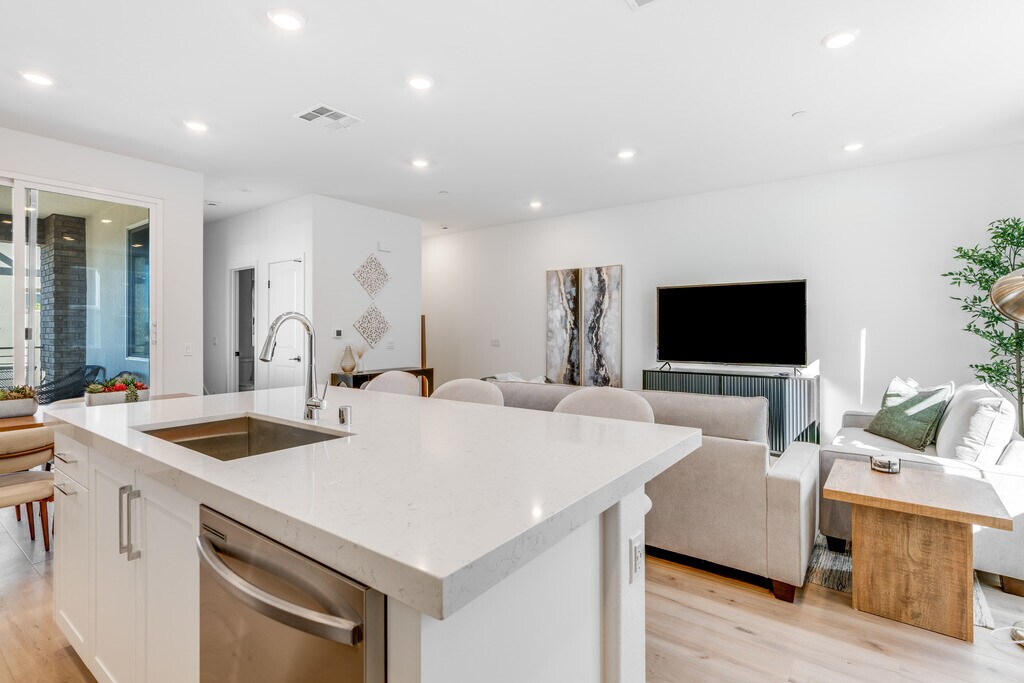 Brand new, beautifully furnished 3 bedroom, 2.5 bath condo located in the highly desirable Hill District of San Marcos. Thoughtfully designed for comfort and convenience, this modern home is ideal for extended stays and traveling professionals seeking a quiet, stylish retreat close to everything. Prime Location for Medical Professionals Less than 1 mile to Kaiser Hospital Under 1.5 miles to Scripps Coastal Medical Offices Minutes to North City, dining, coffee shops, grocery stores, parks, and walking trails. Walkable, clean, and peaceful neighborhood. Bedroom 1 Queen bed with Casper mattress Luxury linens 43" Roku Smart TV Dresser Bedroom 2 Queen bed with Casper mattress Luxury linens 43" Roku Smart TV Dresser Primary Bedroom King Bed with Casper Mattress Luxury Linens 55" Roku TV Dresser Walk in Closet Private Bath Shared Living Space Spacious great room with sofa and loveseat 65 Roku Smart TV High-speed WiFi and utilities included Guest login access to popular streaming apps (Netflix, Hulu, Prime Video, Disney+, and more) Fully Equipped Smart Kitchen Samsung side-by-side refrigerator with Family Hub touchscreen Samsung smart slide-in induction range Keurig coffee maker Food storage containers, cookware, and essentials Perfect for home-cooked meals or meal prep during longer stays. Premium Property Features Open Street parking 2 Car Garage Solar system with battery backup Onsite Samsung stackable washer & dryer EV Charger (addtl. fee applies for charging) Heating & cooling with Honeywell Smart Wi-Fi thermostat Schlage Encode smart lock for seamless self check-in Outdoor patio set for relaxing evenings Brand-New Community Located in The Hill District, a newly built San Marcos community offering modern surroundings and scenic hillside views. While some development is still underway, completed areas provide a quiet, well maintained environment with excellent accessibility. This home offers the perfect balance of comfort, convenience, and modern living, ideal for travel nurses, medical professionals, and anyone seeking a turnkey stay in a central San Diego County location.