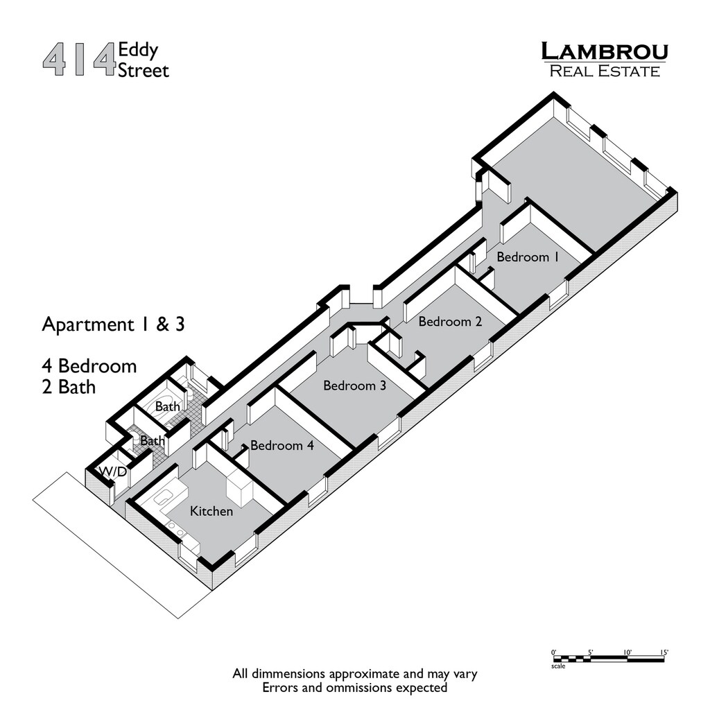 414 Eddy St, Unit 1 offers 4 Bedroom apartments starting from $1,165 and having 1,500 sq ft. Here is the current pricing and availability: