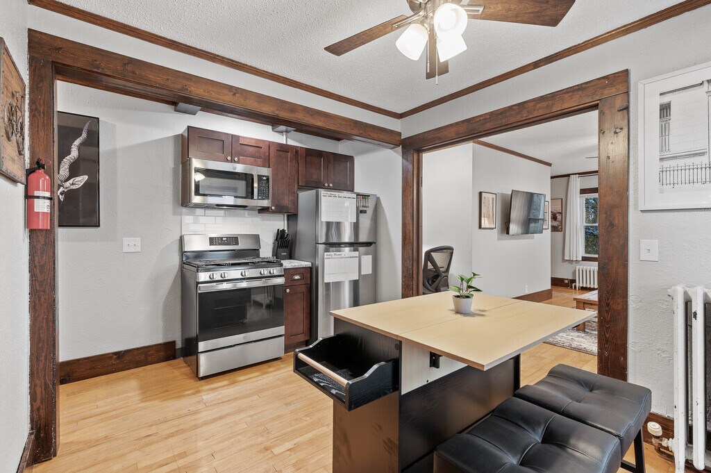 Furnished! Dog Friendly. Fenced in Yard. Coin operated laundry onsite. Keyless entry to building and apartment. Small storage unit in the basement and bike storage available at no additional cost. Off-street parking available on first come, first serve basis (but abundance of on-street parking available). Outside charcoal grill. Prime Location: Quiet and warm 1 bedroom 1 bathroom apartment in a convenient neighborhood. This apartment features an open concept feel, hardwood floors in the living room and dining room, carpet in the bedroom, an eat-in kitchen, and a desk/working space. The bathroom and kitchen were recently renovated. The kitchen features a twist of modern and traditional style with stainless steel appliances (including a dishwasher) and shaker style, soft close, dark wood cabinets to reflect appreciation for the 1920s woodwork. The bathroom includes the traditional subway tile throughout and the original hexagon tile floor. The kitchen is stocked with dishes, utensils, small appliances, and cookware for all your cooking needs. The apartment and the furnishings have a great mix of traditional, modern, and mid-century modern fixtures and decor to create a cozy and relaxing vibe. This neighborhood is perfect for people looking for easy access to highways and close proximity to many hospitals and public transportation. It's also great for entertainment as it's close to Downtown and Uptown Minneapolis and has an abundance of beautiful lakes. Most of the local lakes have awesome walking and biking trails, as well as a variety of available activities such as paddle boarding, bike rentals, kayaking, ice fishing, etc. You can find great food options close by, whether it's a restaurant, a local bar, or a great community grocery store. Some of the local food favorites nearby include Revival, Petite Leon, The Lowbrow, and Boludo, or take a stroll to the Seward Community Co-op for your grocery needs. Located across the street from a cute cemetery where you will see people walking with their children and doggos, going for a run, and riding bikes. Across the street from Regina neighborhood in South Minneapolis, please do your own research as far as the quality and proximity of the neighborhood for your needs/wants. Rent/Fees: $1,800 Monthly Rent, Utilities and High-Speed Fiber Internet Included (Due Before Move In) $29.95 Application Fee $1,000 Security Deposit (Due at Lease Signing) $200 Non-Refundable Pet Fee for One Dog, $300 Non-Refundable Pet Fee for Two Dogs (Due at Lease Signing) $250 Cleaning Fee (Charged Around the Time of Move Out) Dogs Must Be: At Least 2 Years Old House Trained to go to the Bathroom Outside (No Indoor Puppy Pad Use) Fully Vaccinated Spayed/Neutered Friendly With People and Other Dogs Treated for Fleas and Ticks *No Excessive Barking Tenants must provide vet records that show dog's vaccine history, spay/neuter status, and age (estimated is fine). This is for the safety of other tenants and dogs on the property.