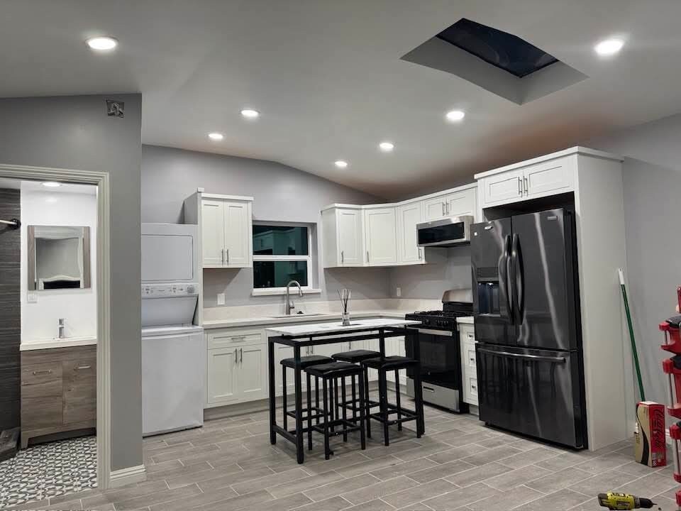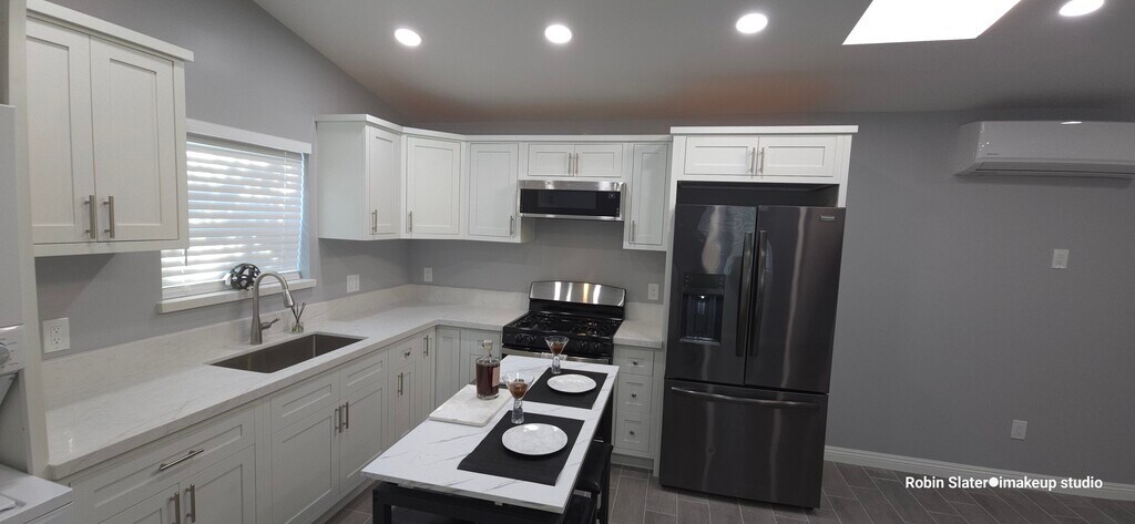 This is a gem!!! A newly fully remodeled from ground up middle unit of 3 unit (no attached walls all separate yards (this one has an extra large enclosed patio.) 1 bedroom & private office or small guest room located in Carlson Park. All new Appliances Gallery Fridgeadaire purified water & ice, stackable washing machine and dryer, Air Conditioning and heat splits Open plan kitchen to living room inspired by all the new hi-end construction. Skylight & bright cheerful. Open to beautiful landscapes bougainvillea & Jasmine. Walk to Downtown Culver City, 1½ blocks S. Of Sony Pictures... Jackson Market around the corner... This is my Dream Property, That I truly care about... never be concerned about anything not being taken care of. I'm not ever selling!!! I'm looking for the right tenants, well qualified, credit & Job. Every tenants in 24 years if a couple has gotten married, 99% have gone on to buy a home... I would rather have good tenants than extra rent... This is a find in the best neighborhood & community ????.... people & families walking dogs & riding bikes... 1½ blocks to bike path. No through traffic. Easy parking no permits needed. Roku TV mounted on wall & Bedroom wall mounted TV is plug ready.