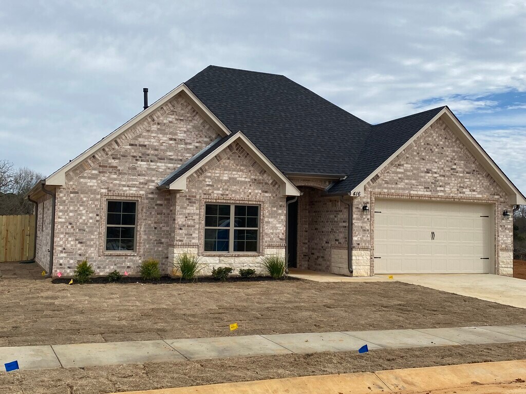 Newer, modern brick home located in Kingdom Estates in Lindale ISD is ready for your occupancy. This is a new neighborhood perfect for young professionals, families and retirees. Home features three bedroom, two bath in 1,450 square feet with granite counter tops, hardwood tile flooring throughout (NO carpet), built-ins, small front and back yard with sprinkler system and privacy fence, 2 car garage, gas heat, gas water heater, gas stove and gas fireplace. Renter must provide their own refridgerator. Home is easy access to Interstate 20, Lindale and Tyler. Small pets could be considered. Lease is for one year. Renter is required to maintain yard and landscaping. This home is in a Home Owners Association and renter must abide by covenants. There is an application fee and applicant must pass credit and criminal background check.
