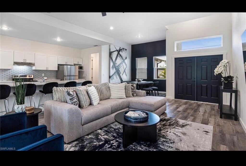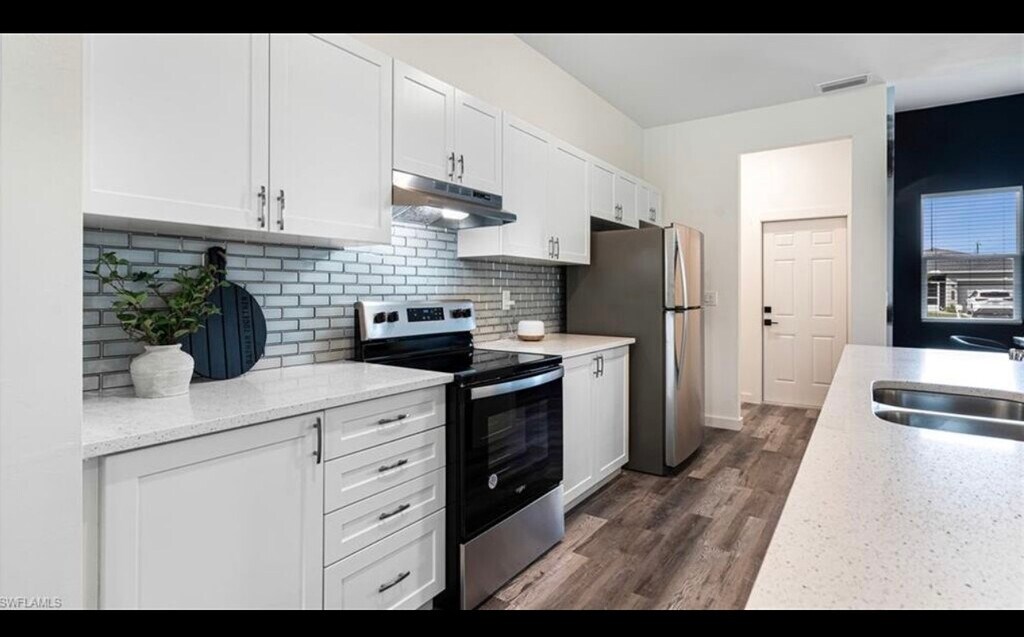 Beautiful 2023-built home featuring 4 bedrooms, 3 full bathrooms, and modern finishes throughout. Enjoy an open-concept layout with high ceilings, a spacious kitchen with quartz countertops and a large island, stainless steel appliances, and impact-resistant windows and doors for peace of mind. The primary suite offers a walk-in closet and a luxurious bathroom with double sinks. Tile flooring throughout, indoor laundry with sink, and a large covered lanai perfect for relaxing. Located in a quiet, growing neighborhood with no HOA. Move-in ready and feels like new!