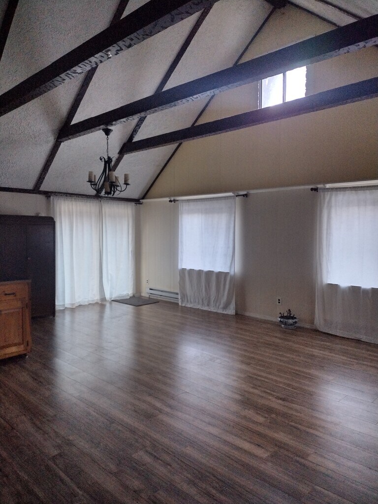 Charming 3 bedrooms 1 bathroom chalet nestle in a quiet and peaceful road short drive to local shopping and attractions. House offers open floor plane with living room, dining room and kitchen. It has 2 bedrooms and a bathroom on main level and loft bedroom on upper level. It comes with large deck for the enjoyment of outdoor, barbecue and relaxation. It offers 2-3 car driveway.