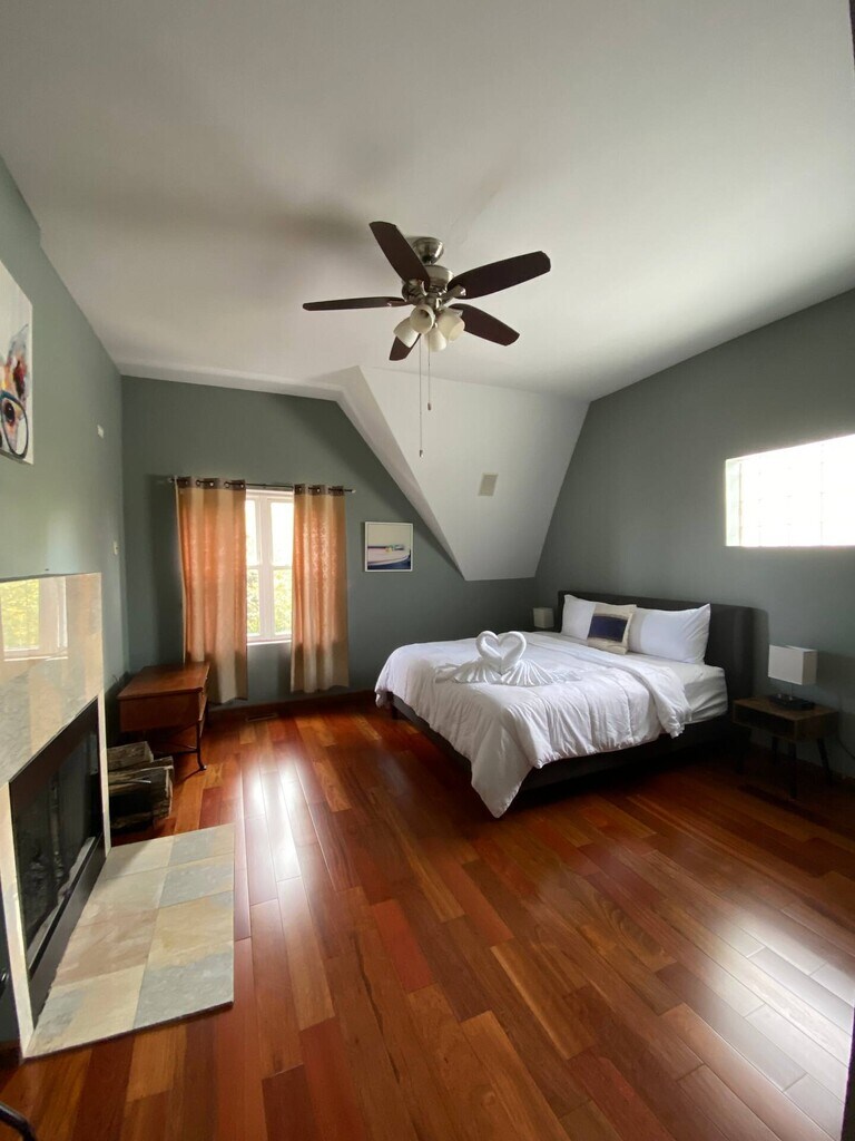 Nestled in Chicago's Historic Bronzeville neighborhood, lays this 1888 Row Home built ready to suit all your wishes. Want to cozy up or explore all of what Chicago has to offer, this “Landmark” will not disappoint. Nearby local Bars & Restaurants, Downtown, McCormick Place, Museums, Universities, West Loop, Pilsen, China Town & More! The space: This historic Bronzeville Row Home was built in 1888 and is now illuminated by tons of natural light from its skylight and large windows. Your group can relax with coffee/tea out back furnished with tables and seating. Find some nods to the neighborhood history through art and literature placed throughout our home. PRIMARY BEDROOM | 3rd Floor - One King Bed - Large Windows with Chicago views - HUGE Walk-in Closet - Additional Closet in room - Nightstands w/ lamps - Wood Fireplace - Skylight PRIMARY BATHROOM | 3rd Floor (NEWLY RENOVATED!!) - Double vanity sinks - Large Soaker Tub - Walk-in Shower QUEEN BEDROOM #1 | 2nd Floor - One Queen Bed - Closet - Nightstand w/ lamps QUEEN BEDROOM #2 | 2nd Floor - One Queen Bed - Large Windows with Chicago views - Walk-in Closet - Nightstands w/ lamps - Wood Fireplace OFFICE / YOGA FLEX ROOM | 2nd Floor - Office / Bedroom / Workout room BATHROOM | 2nd Floor - Vanity Sink - Shower & Tub LAUNDRY ROOM | 2nd Floor - Washer - Dryer LIVING & DINING ROOMS | 1st Floor - 51" Smart TV (Stream movies & shows.) - Dining Table w/ chairs - Large Windows - Wood Fireplace ½ BATHROOM | 1st Floor KITCHEN | 1st Floor -Stainless Steel appliances BASEMENT -Finished basement BATHROOM | Basement - Full bathroom