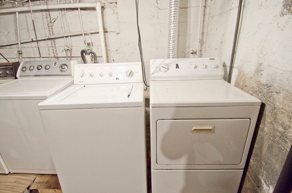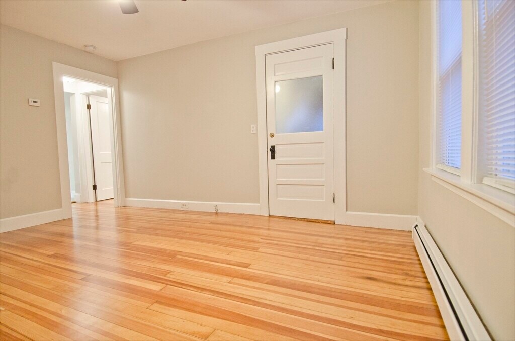 Bright 1st floor 2 bedroom, private outdoor space and basement laundry exclusive for the unit. Beautiful hardwood floors through most of the unit, tile in the kitchen. Kitchen features gas cooking, large fridge, dishwasher and lots of cabinet space. Plenty of room for a big kitchen dining table. The tiled bath is also quite spacious. 1 Off-street parking space that is slightly narrow to access so it works for smaller cars. Otherwise there is on street parking and no permit is required. Tenant pays 1st and last, so just 2 month's rent total to move-in. Tenant pays gas & electric. Water/sewer is included. Must have good credit (FICO 700+), references, and sufficient & verifiable income to support rent. Easy to show,