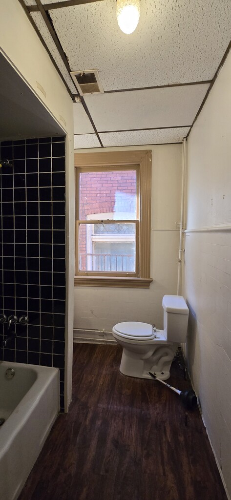 2nd floor apartment Gas and electric are in addition to rent Free off street parking Laundry in building Location is across street from parklet and grocery store Near 3 area hospitals and bus stops Available now Must pass background check Credit 600 or better Income 2.5 times rent