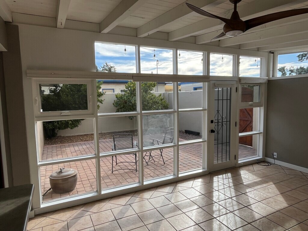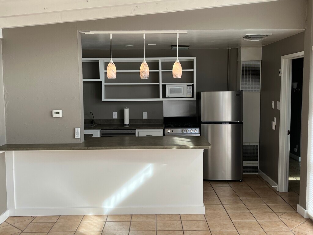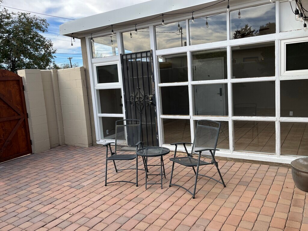 Tastefully updated Nob Hill mid-century duplex with high walled private patio included in square footage. Wall to ceiling windows with full shades. New SS kitchen appliances, Blanco sink/facet with disposal. Nice sized closets in main bedroom and second room ideal as an office with closets. Heated by gas and cooled by evaporative unit. Easily walkable to all Nob Hill restaurants, coffee shops, public transportation and city bike trail network. Ideal for non-smoking individual professional, graduate student, medical resident or University professional. Off street parking. Quiet tenant required.