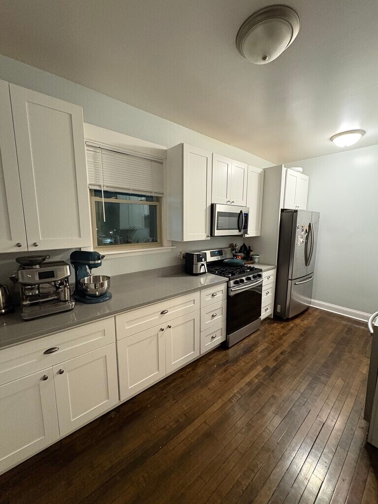 Gut rehabbed a few years ago, a two-bedroom condo-quality apartment for rent in Irving Park, Chicago, in a beautiful brick four-flat building with a center entrance. The pictures don't do it justice. The apartment has central air/ac and Nest thermostat, contemporary kitchens with stainless steel appliances, 42" solid wood shaker cabinets, quartz countertops, and stainless appliances, including a dishwasher. Also, new electric and plumbing. The floors are gorgeous, as are the kitchen and bathroom. Bedrooms are a good size, master can fit a king. Large living room with sun porch, separate dining room, new baths, finished dark hardwood floors Huge yard! Storage and free laundry in basement, back decks, and huge yard for gardening and grilling. Sorry, no dogs, but cats welcome. This apartment for rent is near Montrose Saloon, Templestowe bar, Ravenswood Manor, four blocks to Brown Line. Great neighborhood. Close to Cermak Fresh Market and Walgreens. Short walk to beautiful Horner Park! Easy street parking.