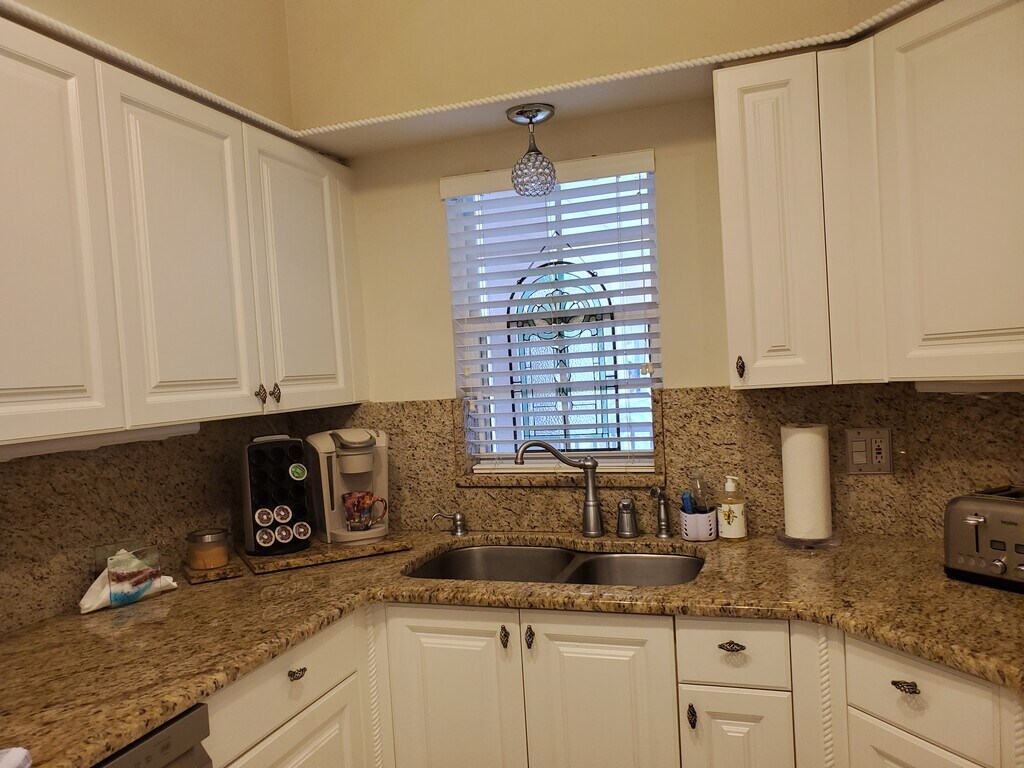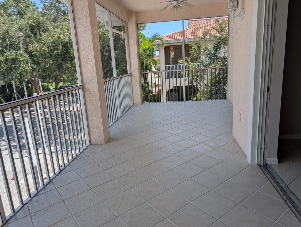 Mediterranean Style condo with soaring cathedral ceilings, and split layout offer natural light and space. Sliding doors leading from living room and Master to an expansive lanai offer an abundance of light and "al fresco" living. Just steps from the heated Pool, spa, fitness center and tennis court. Gated community a short drive to Siesta Key Beach, golf shopping, dining and miles of paved nature trails Freshly painted with tile flooring and granite counter tops. Credit and background checks required. Call to schedule showings or for more information. This condo is staged- Unfurnished