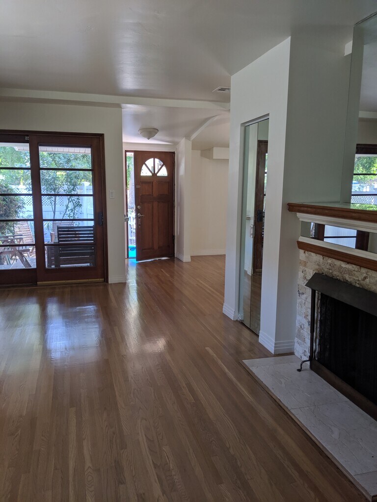 Lovely traditional home doors from vital area of Ventura Blvd. Tree lines street and planters available for herb or small garden. Carport for one car and permit parking. Garage storage in detached garage. New paint. Dining roon or den for potetial very office. No pets or smokers please. Warm and welcoming place to recharge.