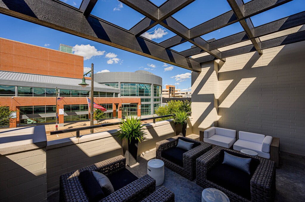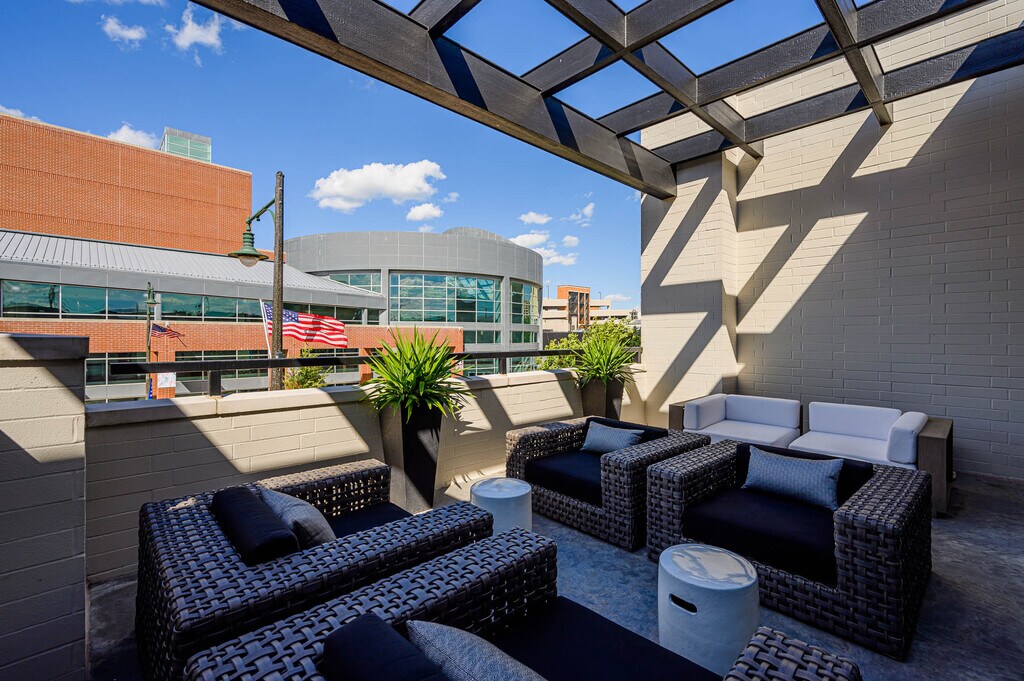 One of there exclusive units directly across from the Performing Arts Center. Large, open concept living area that opens to a fantastic pergola covered porch. This unit includes a 1 car private heated garage. 1 bedroom and 1 bathroom. Fully applianced with everything you need including laundry. Also includes a Sonos sytem. We require 3x the rent in gross monthly income and a credit score of 650+. All appicants over 18 to complete an application.