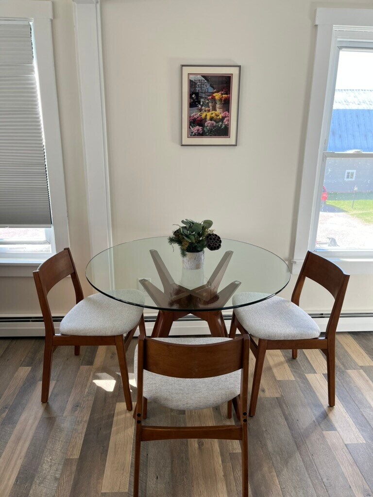Modern Studio Retreat Just Minutes from Burlington Live inspired. Work efficiently. Relax completely. Step into your own private haven, a fully furnished modern studio nestled on a peaceful farm estate just minutes from downtown Burlington. Designed with the discerning professional in mind, this space blends modern comfort, natural light, and effortless living. The Space A sun-filled, open-concept studio designed for simplicity and sophistication. Floor-to-ceiling windows invite warmth and daylight, while elegant furnishings and hardwood floors create a calm, modern atmosphere. Included: Stylish furniture bed, sofa, dining set, and more Fully equipped kitchen with cookware and appliances In-unit washer/dryer for total convenience Air conditioning and heating High-speed fiber internet for seamless work and streaming All-Inclusive Living Say goodbye to utility hassles, everything's included: Heat, hot water, electricity, WiFi, trash, lawn care, and snow removal. Just move in, unpack, and start living. On-site parking for two vehicles Quiet, smoke-free environment Pet-friendly (case-by-case, small annual fee) Access to walking paths and peaceful green spaces at Destiny Morgan Farm Why You'll Love It Imagine starting your day with sunlight pouring through your windows, coffee in hand, surrounded by nature, and still being only minutes from Burlington's cafes, startups, and lakefront. At night, unwind in your cozy sanctuary, a place that balances calm with connection. This is more than a studio, it's your urban retreat. Perfect For: Young professionals, remote workers, and anyone seeking a serene, stylish home base close to Burlington. All utilities included. An animal requires a $500 one-time fee. 2nd Floor apartment. Rental 1-year lease