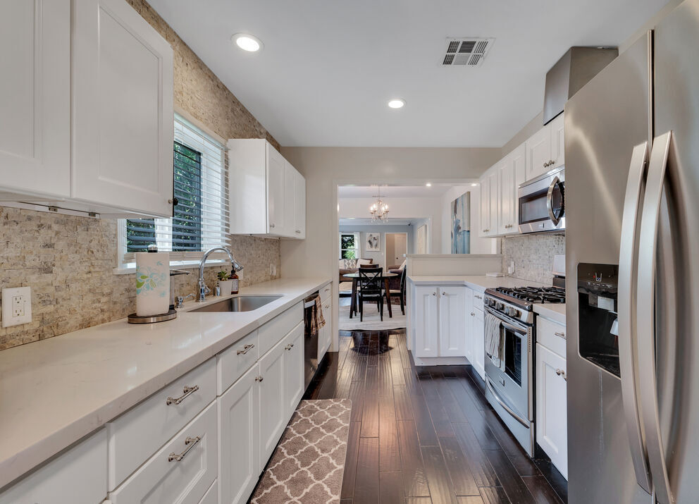 This South of the Boulevard corner lot offers convenience without compromising privacy. All three bedrooms are generously sized, including the master suite with high, vaulted ceilings, two closets, and a beautifully designed bathroom with a walk-in shower and drop tub. The kitchen comes with top-of-the-line appliances and plenty of cabinet space. Outside offers multiple areas for lounging and entertaining, TV and seating area, and a large pool for LA's hot days. Walking distance to Ventura Boulevard, minutes to Universal Studios, Beverly Hills, West Hollywood, UCLA, Santa Monica with close freeway access. Close to the Dodgers Stadium, Downtown LA, Silverlake, and the best that LA has to offer.