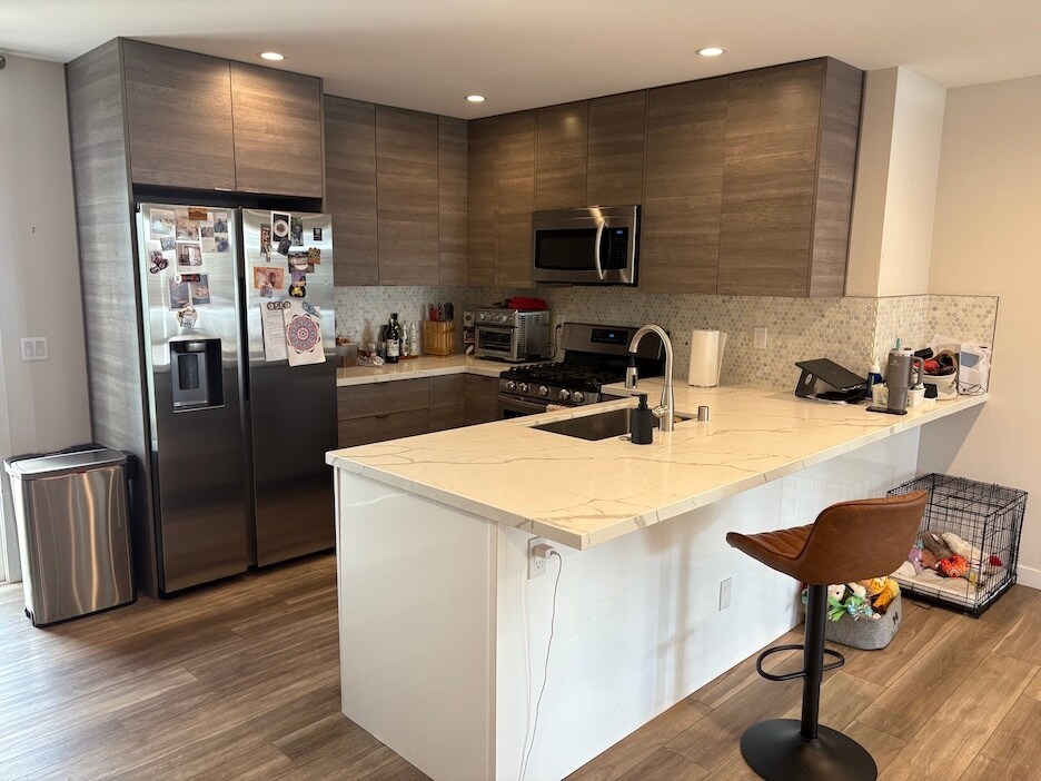 Recently renovated home in Bay Ho with designer finishes. Excellent curb appeal with landscaped front yard and white picket fence. Enter the home and find open concept living for the kitchen, dining and living room. Enjoy stylish modern finishes such as LVP flooring, quartzite countertops, recessed lighting, ceiling height kitchen cabinets, stainless steel appliances and A/C! Large Primary suite was built new 2 years ago and comes with 10-ft ceilings, dual sinks, luxurious walk-in shower and slider to backyard. Primary suite is separate from main living area and other bedrooms for privacy. In-unit Laundry. All appliances included! Low-maintenance backyard w/pavers. 1-car garage plus driveway, gives 2-3 parking spaces off the street and there is plenty on-street parking for guests - also included is a 220 plug-in to charge your EV. Excellent Bay Ho location is close to beaches and freeways for easy commutes. Well-behaved pets will be considered & must be approved by broker. Ready for occupancy Nov 20 (maybe a few days sooner if needed). Note: vacant photos are from 2 years ago. Interior will be painted prior to move-in. 2 original front bedrooms not pictured are standard/original size with same finishes as other rooms. Tenant pays for utilities. Owner pays for landscaper, trash service and pest control. Seeking 1-year+ lease. Tenant to get renters insurance. No smoking.
