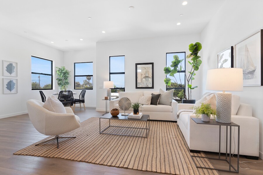 Luxurious 2 years old New Construction in Bay Ho / West Clairemont! One of the nicest & most unique local offerings, this home has barely been lived in! Upstairs 3 bed, 2 bath, 1480 sq ft with 10' ceilings. Oversized 2-car garage, 700 sq ft rooftop terrace & small, zero-maintenance backyard. A chef's kitchen perfect for intimate meals or entertaining large groups. Master bedroom suite comes with separate bathroom & walk-in closet. Enjoy 360 degree views from the rooftop deck - views from the Ocean to Mexico and to the Eastern Mountains! Solar Electric included makes for low SDGE bills. 220v outlet in garage for charging your EV. A/C, laundry, recessed lighting, dual pane windows, vinyl plank wood flooring, custom cabinetry and high end appliances are ALL included, even a wine fridge. Must see in person! Centrally located with easy access to freeways, beaches or uptown / downtown. Small Pets considered for additional fee/deposit. Property is UNFURNISHED. Owner pays water. Tenant has SDGE account, but Solar covers most of electric charges. Tenant pays for Cable/internet. Owner will consider well-behaved pets. No smoking. Available 1/15/26 at the earliest.