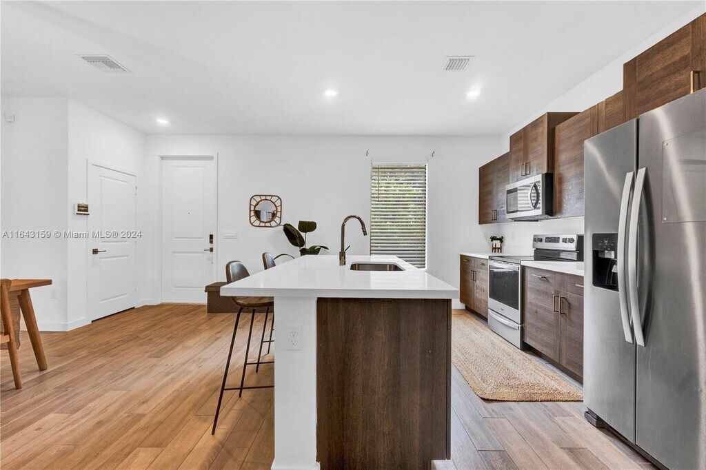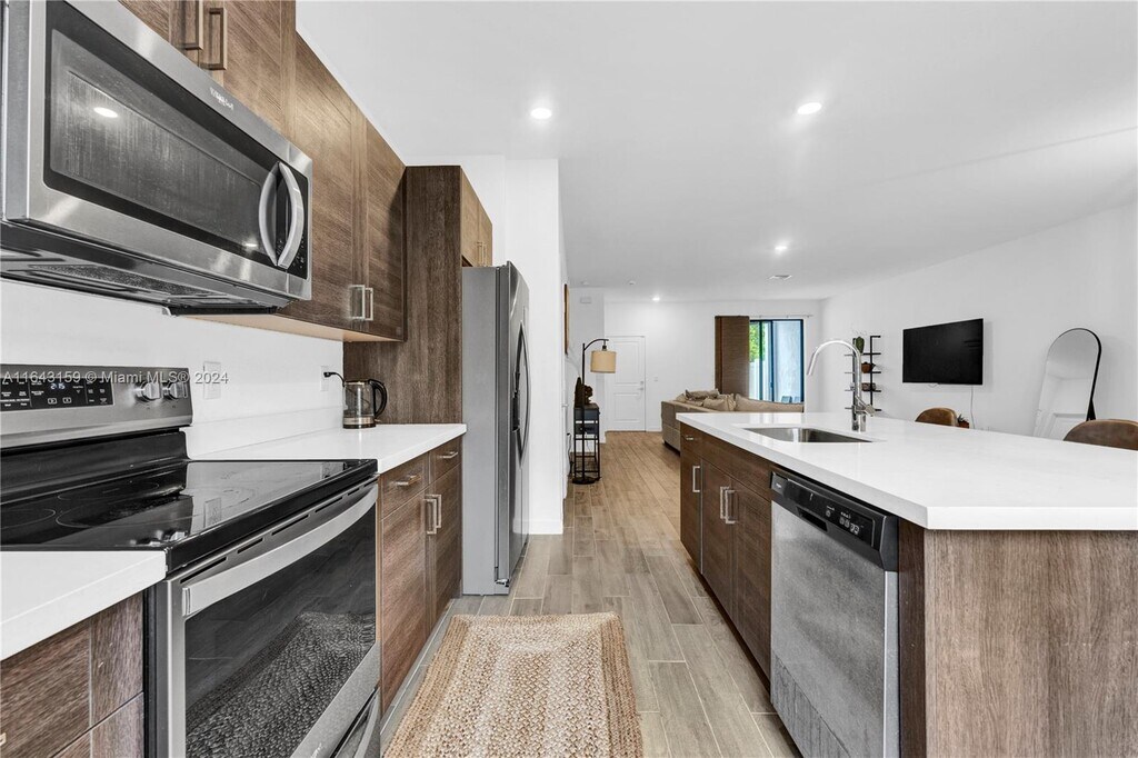 This stunning, newly constructed three-bedroom, 2 1/2-bath townhouse blends elegance and comfort. With its modern open concept, complemented by 10ft high ceilings and stylish wood tile floors, the spacious living and dining area flows seamlessly into a beautiful gourmet kitchen with stainless steel appliances and a large walk-in pantry. The primary bedroom has a luxurious en suite and a large walk-in closet. Enjoy the convenience and comfort of a versatile loft and the 2nd-floor laundry room. Its private fenced-in patio provides the perfect outdoor space. It's ideally located near Malls, Downtown, Wilton Manors, and the Fort Lauderdale Airport. It's also just minutes away from gorgeous beaches. Take advantage of this blend of style, comfort, and location.