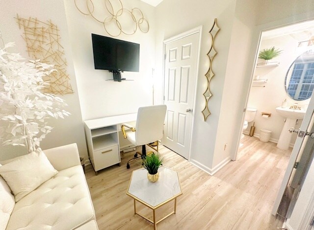 Welcome to this exceptional 3-bedroom, 3.5-bathroom townhome in Ashburn, Virginia offering three FULLY FURNISHED levels of stylish and comfortable living. Recently remodeled from top to bottom, this home blends modern design with everyday convenience. The spacious layout includes a private garage with secure parking and extra storage space, and every room is fully furnished with contemporary decor. The upgraded kitchen features stainless steel Whirlpool appliances along with cookware, dishes, and utensils, making it completely move-in ready. A washer and dryer are included, and the first-level bedroom has been converted into a dedicated home office, ideal for remote work or study. Fresh finishes and modern touches have been thoughtfully added throughout the home. The home comes complete with an ADT security system, as well as ring cameras in the front and rear of the home. On the main level, recessed lighting brightens the space and highlights the open design. The living area is complete with a large smart TV, while the adjoining dining room offers a beautifully decorated space for gatherings. The upper level features two bedrooms, each with its own private bathroom, remodeled closets, and smart TVs for added convenience and comfort. Situated in a sought-after Ashburn neighborhood just 15 minutes from One Loudoun and Dulles Airport, this home provides easy access to shopping, dining, schools, and major commuter routes. Residents also enjoy access to community amenities including a pool, neighborhood playgrounds, and walking trails. This turnkey rental is an excellent option for professionals, traveling nurses, flight attendants, couples, or anyone seeking a modern, low-maintenance, and fully furnished home. NOTE: Water, HOA, Internet, and Gas is included. Electric, and quarterly cleaning fee is not included.