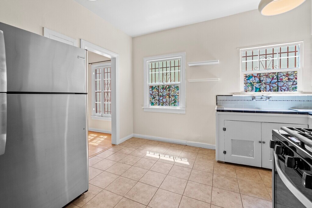Spacious 2-bedroom/1.5-bathroom unit that is 1,200 sqft, has central heating, tandem parking, and classic 1920's architectural details. The living areas feature an open concept floor plan, hardwood flooring throughout, original details, and high ceilings. The kitchen is large, has original decorative tile countertops and backsplash, tons of cabinet storage space, a refrigerator, and a stove/oven. There is a separate dining room off the kitchen. Bedrooms are spacious, have ceiling light/fans, and large closets. The main bathroom has original art deco details, a separate spacious soaking tub, and a newly renovated shower stall. Secondary bathroom is en suite to the back bedroom. Prime Fairfax location close to the Grove and all the trendiest coffee shops, restaurants, and shopping on Melrose, Fairfax, and Beverly. Short drive to West Hollywood, Beverly Hills, Hollywood, and Hancock Park. Tandem parking behind the building. Laundry is available at building owned by same owner across the street. Enjoy a luxury living experience in a classic 1920's unit in one of the most in demand locations in LA.