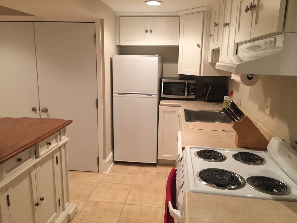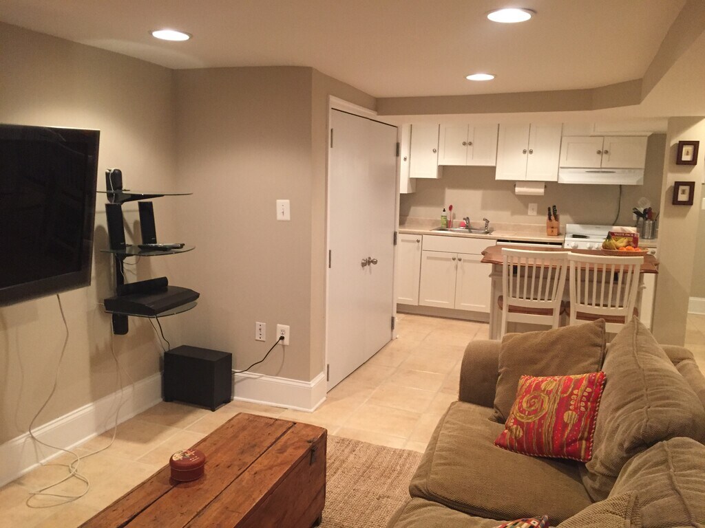 This is a cozy, secure fully-furnished 1-bedroom English Basement with a full kitchen, washer/dryer and lots of closet space. All utilities included. The bedroom has a queen bed, two closets, a night stand, dresser, table lamps and area rug. The living/dining/kitchen area has a sleeper sofa, desk and chair, an island bar with 2 stools, a full kitchen including dishwasher, and a wall mounted flat screen smart TV (no cable) and entertainment system with free Netflix, Amazon PrimeVideo, and music apps + an HDMI cable for laptop connection. Table and chairs on the patio outside is for your exclusive use. Location: Less than a block from central bus lines (the 80, D8, and H2/3/4), 15 minutes walk from both the Rhode Island Ave. and Brookland Red Line Metro Stations, 2 miles from Union Station, and close to the nightlife of Union Market, Columbia Heights, Adams Morgan, and H St. Two blocks from Edgewood Recreational Center. Parking: A free parking permit is available for guests.