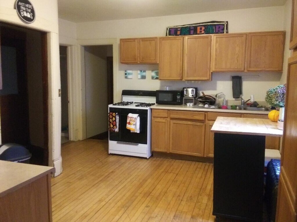 Unit 1 available August 15, 2026. Bassett Neighborhood lower flat with covered front porch located on bus line and bike path close to UW campus and downtown/State Street, pet park, basketball and tennis courts, Kohl Center, Lake Monona, and all that Madison has to offer. Virtual or in-person tour available on request. Bright living room, eat-in kitchen, 4 bedrooms and bath. Three of four bedrooms are very large and all have ample closet space. Fully repainted in 2019 and thorough touch up annually through 2023. New refrigerator and four new triple pane windows in 2026, small chest freezer and stove in 2020. New boiler for heating in 2020. Keyless entry and electronic locks on all bedroom doors for added security and convenience. On site parking available at additional cost by separate lease. Inside bike parking in basement with exit door to drive or in large rear entry. On-site coin laundry. Sewer, water and gas/heating is included. MG&E estimates monthly electricity cost at $105/mo (high $165/low $43, but may be more or less, current tenants with higher than usual usage. Owners/Managers are accessible and responsive, have only 2 properties to manage.
