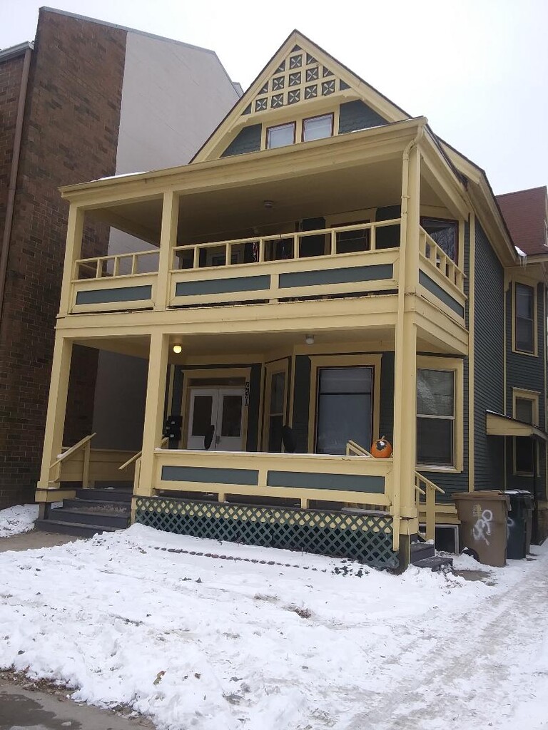 Bassett Neighborhood upper and lower flats with porch on ground level and covered upper deck/porch in a fantastic location 1 block from Lake Monona on bus line and bike path close to downtown/State Street, Kohl Center, UW Campus, pet park, tennis and basketball courts, and all that Madison has to offer. Virtual or in-person tours available on request. Lower flat with 4 BR and one bath, large bright rooms and plenty of closet and storage space. Spacious upper flat with 2 bathrooms and 3 large bedrooms on second floor and fourth on 3rd floor. Largest bedroom on 2nd floor has partial dividing wall and could easily be shared. Another unheated large room on 3rd floor could be used for additional storage/closet space or hobby room. Huge adjoining dining room and living room/front room/parlor freshly painted in 2025. 14 new triple pane windows and porch door installed in 2023-2026. Refrigerators, small chest freezers and stoves in both units all new since in 2020. New boiler for heating in 2020 as well. Keyless entry and electronic locks on all bedroom doors for added security and convenience. Parking available behind house (4 spots) for additional charge. Bike parking in basement with exit door to driveway. Owners/Managers are accessible and responsive, have only 2 properties to manage. Gas, sewer, water and trash pick-up included in rent.