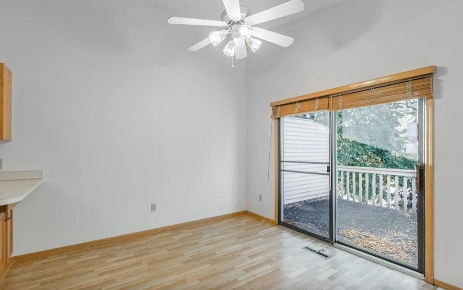 Spacious & Sunlit Interiors: Vaulted ceilings in the main living area create an open and airy atmosphere, complemented by new windows and patio doors that fill the home with natural light. The thoughtfully designed floor plan makes everyday living effortless. Perfect for Living & Entertaining: The cozy fireplace in the family room provides a welcoming focal point, while the seamless flow to the dining area and kitchen makes hosting gatherings a breeze. Well-Equipped Kitchen & Ample Storage: Enjoy plenty of cupboard and counter space, along with extra storage nooks and a convenient pantry perfect for keeping everything organized. Private Master Retreat: The large master bedroom features his-and-hers sinks and a dual vanity, creating a relaxing personal space to unwind. Outdoor Living: Step onto your private deck off the main level, ideal for morning coffee, grilling, or simply enjoying the peaceful surroundings. Finished Lower Level: The walk-out lower level provides additional living space, perfect for a home office, playroom, or recreational area. Convenient Parking & Quiet Setting: An attached garage and driveway provide ample parking. Located on a quiet cul-de-sac, the home is close to parks, trails, and neighborhood amenities. Community & Maintenance: The HOA takes care of lawn care, snow removal, and common area maintenance, giving you more time to enjoy your home. Excellent Schools & Connectivity: Thomas Lake Elementary (~0.4 miles), Black Hawk Middle (~0.7 miles), Eastview High (~3 4 miles) The home is also conveniently close to shopping, dining, parks, and major roads. Peaceful, Green Neighborhood: Enjoy lush green spaces and a tranquil setting, with a strong sense of community. Pet-Friendly: Pets are welcome, making this a true home for the whole family. There is a application fee of $50 per occupant aged 18 or older. Minimum lease term is 1 year. Resident pays for all utilities.