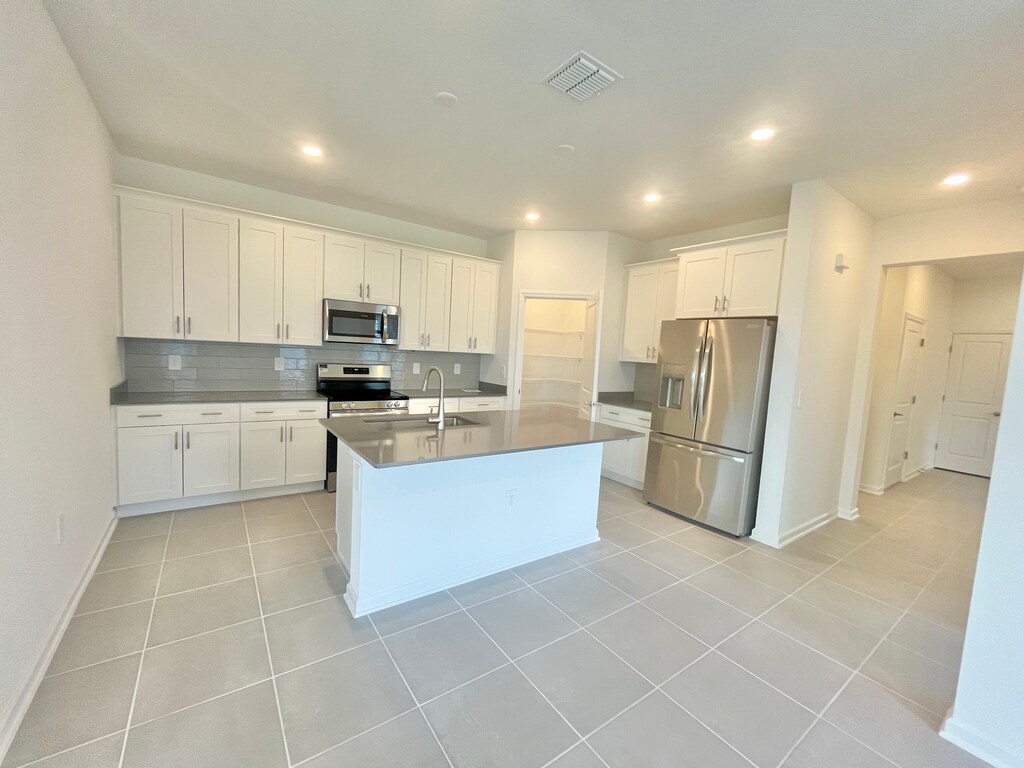 Discover the perfect rental opportunity in the highly sought-after, maintenance-free, gated community of Esplanade at Westview. This stunning, single-story Ventura Model villa offers an impeccable living experience with premium finishes. THE HOME: MODERN FINISHES & FUNCTIONAL DESIGN Step into a bright, open-concept floor plan designed for effortless daily living and entertaining. Every detail of this home reflects a commitment to quality and style: Gourmet Kitchen: The spacious kitchen features an oversized center island, sophisticated Quartz Countertops, and a full suite of Stainless Steel Appliances. Premium Flooring: Durable, attractive ceramic tile flooring extends throughout all main living areas, the kitchen, studio, and wet zones, simplifying upkeep. Private Den: A highly versatile bonus room that serves perfectly as a dedicated home office, a cozy media room, or a flexible third sleeping area. Master Bedroom: Located privately in the rear of the home, complete with a generous walk-in closet and a luxurious en-suite bathroom featuring a dual vanity and glass-enclosed shower with seating. Convenience: Includes a dedicated laundry room and features modern connectivity. Outdoor Space: Relax on the private, covered Lanai, seamlessly accessible from the main living area. THE LOCATION: CONVENIENCE & CENTRAL FLORIDA ACCESS Located in a prime area of Kissimmee, you are close to everything Central Florida has to offer: Shopping & Dining: Just minutes from Poinciana Towne Center, Poinciana Marketplace, and all major retail and grocery necessities (e.g., Walmart Supercenter). Healthcare: Conveniently located near the HCA Florida Poinciana Hospital and essential medical offices. Recreation: Close proximity to local parks and quick access to major roads. This home is located away from the big city yet still close enough to go into the city or airport. Commuting: Excellent access to the Cypress Parkway and the Poinciana Parkway, providing direct routes toward I-4 and other major arteries. Attractions: Approximately 35 minutes from the Walt Disney World Resort and a reasonable commute to other major Orlando attractions.