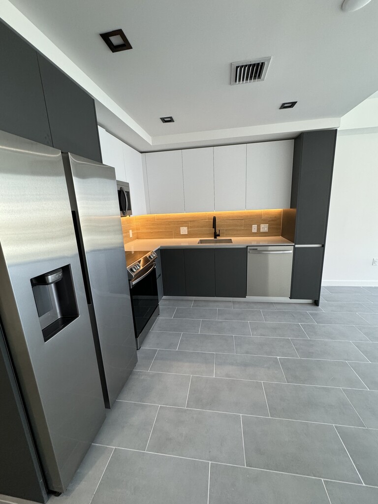 The apartment offers spacious rooms with plenty of space to move comfortably. All the features of your future home have stainless steel appliances, walk in closets, high quality Italian kitchens and cabinetry, washers and dryers. The finishes include new granite countertops with ceramic ivory tile flooring. All the units have their own private patio or balcony, walk in shower and tubs, high ceiling and Comcast available.