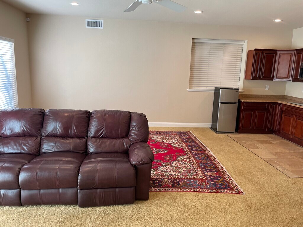 Private entrance is a walk-out to the backyard. Clean and Sober house. Non-Smoking. Private residence with a retired couple living upstairs. - All Utilities are free. Including Internet. - Private Laundry in the garage, -- Garage parking with car backing into the garage. unable to accomodate large cars or trucks. - Tenant has own garbage can, move to the street curb weekly. If interested, reply by email only. Include full Name, Phone number, and your Email address . Credit check $40.