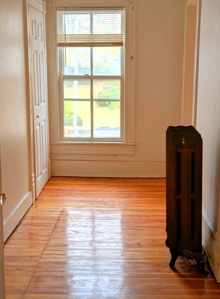 radiator heat | In-room air conditioning | laundromat on-site | hardwood floors | No smoking | No pets This convenient second floor walk-up one bedroom apartment is located in historic Old Southwest Roanoke, near Highland Park. It features original hardwood floors, a large living room with a bay window, an eat-in kitchen with a gas stove. Large closets in the bedroom and hallway, plus a large foyer area useful as an office or computer room. Freshly painted, new photos coming soon. Entrances front and rear, with a large back yard, patio, and deck. Radiator heat, gas, water, sewer, and trash collection included. Tenant pays electric and internet. Two window AC units are included with the unit. Apartment is 1 block from city bus line. On street parking. Laundromat in building for tenants’ use. No pets.