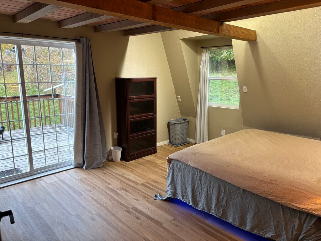 Peaceful Otis Property backs up to water district and BLM land so one side is mostly forest. 2 acres of room to wander. Owner will be getting chickens soon (no rooster). Large Barn conversion house. This unit is upstairs and has multiple entrances. Large bedroom, with large vaulted ceilings and a loft with a bed, 80” TV couch and coffee table. NO pets. NO exceptions.