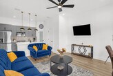 Modern comfort meets luxurious relaxation in this spacious family home. Enjoy a full kitchen, fast Wi-Fi, and in-unit laundry, perfect for long stays or weekend escapes. Bright, open spaces and a centrally-located neighborhood make it easy to unwind, work remotely, or explore nearby shops and attractions.