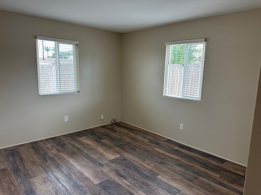 It is the rear unit of this duplex on a quiet street. There is a detached one car garage and one assigned spot in driveway. This unit is freshly painted with all new windows throughout. The unit's kitchen is completely renovated. There are 3 oversized bedrooms with mirrored closet doors and vinyl plank flooring. There are washer and gas dryer hookups available just a step out the back door. A private patio and backyard are included. Ths unit is walking distance to tons of shopping in Clairemont Town Square. The location is minutes from major freeways. PLEASE NOTE: THE KITCHEN AND LIVING ROOM PHOTOS SHOWN ARE WORK IN PROGRESS PHOTOS. The unit's renovations will be complete by 1/15/26. Thank you.
