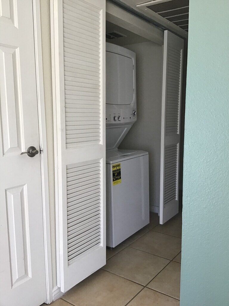 In the unit dish washer, refrigerator, stove and microwave. Washer and dryer, big back patio with synthetic grass and fenced.Cominity gated, pool, tennis court, gymnasium, security , close to shopping center, good zone and secure.