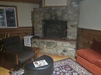 Furnished four-room Mid-Century Cabin with Queen Bedroom adjoining spacious living room with massive fireplace: Utilities, private W/D, and house-cleaning services provided. Bamboo and tiled throughout, vaulted ceilings with skylights and track lighting, stained glass, and custom windows. DirecTV and Roku box. Monitors and printer. 30-day stays or more (rent reduced by $200/month for longer term stays to $4k for year).