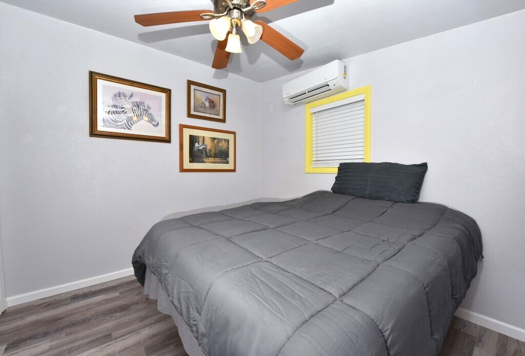 This quiet secure property offers three living spaces ranging from 400 to 700 square feet. The units come furnished and features modern quiet air conditioning and heating for year-round comfort. The living areas provide for relaxation, while the bathroom includes essential fixtures for convenience. The bedrooms are designed for privacy and restful sleep. Additional amenities include laundry facilities and WiFi access for a fee, BBQ patio table and chairs for outdoor enjoyment. The property is smoke-free and with an automatic gate enhancing security, convenience and peace of mind. The rental price for each unit is available upon request.