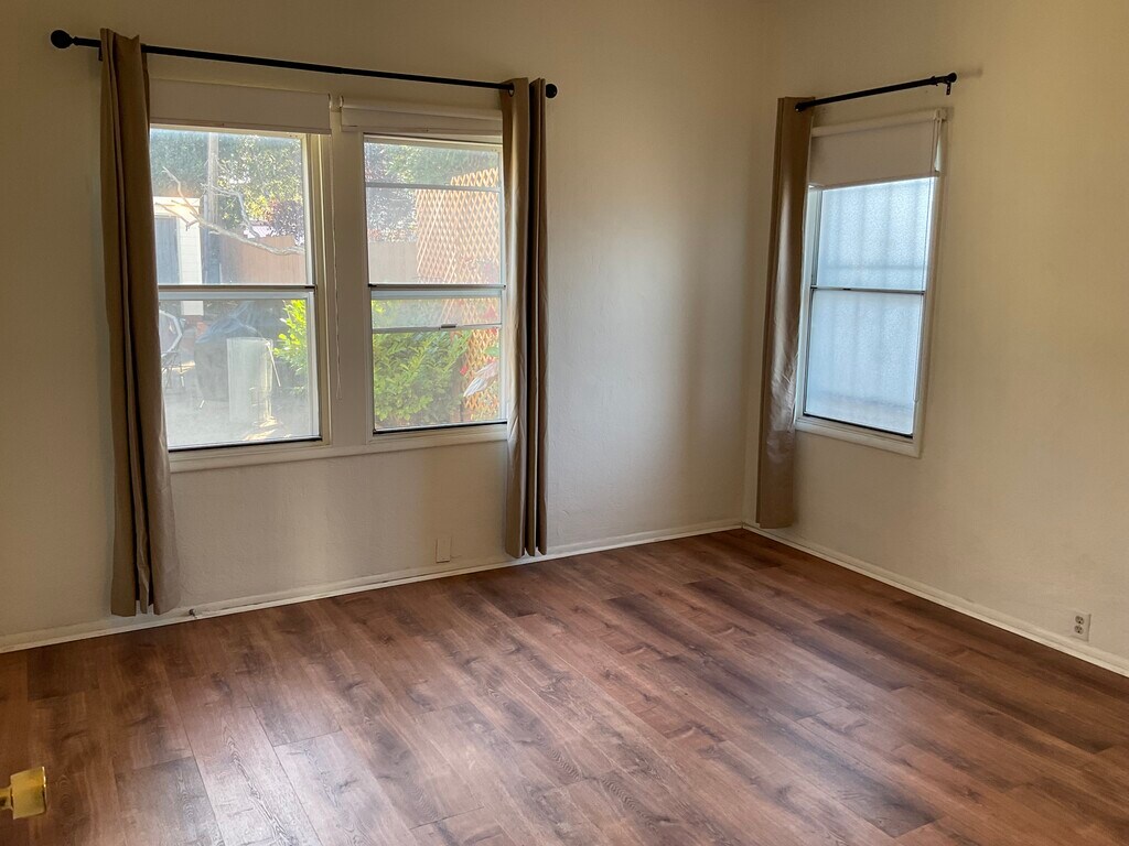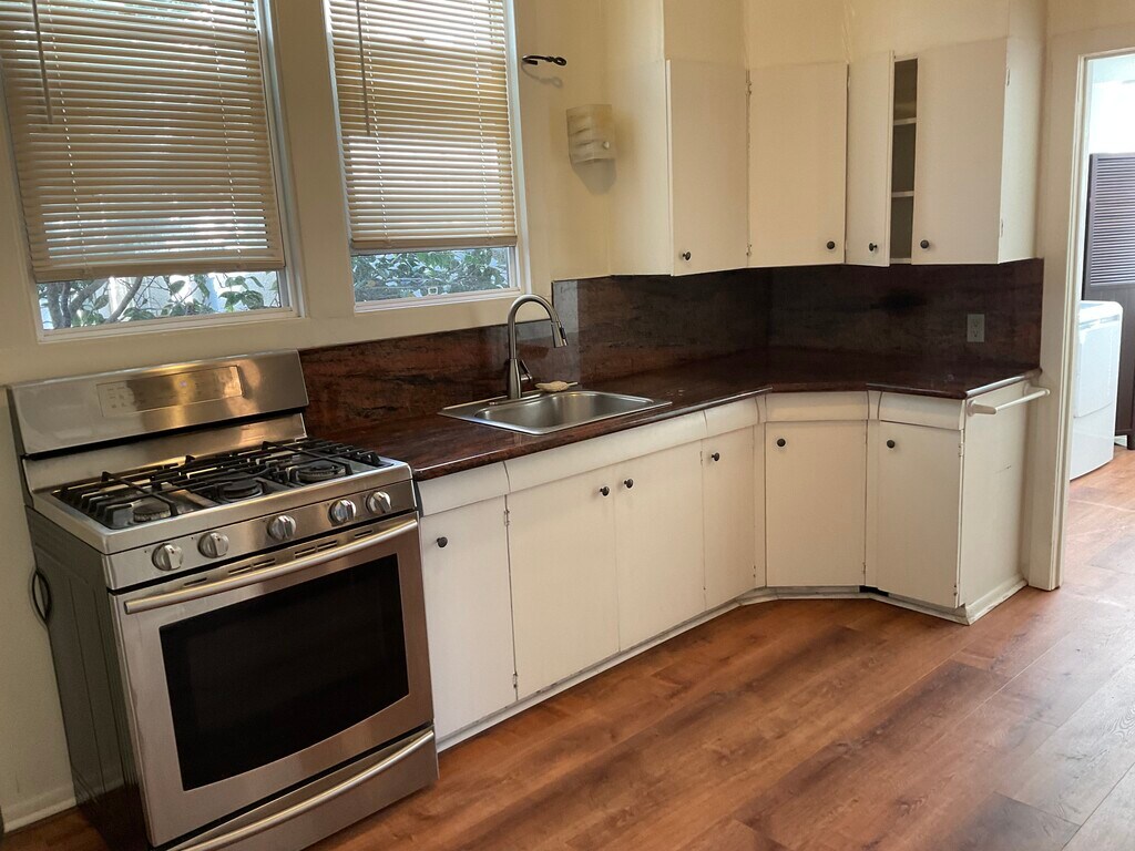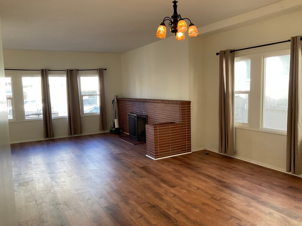 Here we have an ideally located, beautiful two bedroom, one bathroom apartment. Built in 1922 and located about a block away from Lake Merritt in a nice residential district. I don't really like to use the word 'apartment' because it's more like a charming house. This is the downstairs unit of a duplex. It is 1,200 Sq. feet. Central heating. Lots of windows for ample light to get in. It has a very spacious living room and dining room. A good sized kitchen as well with new countertops with a good sized eat in kitchen. The kitchen cabinets and storage cabinets are original and in great shape. Plenty of closet space. The entire unit has brand new floors and was recently painted. The pics will show you all the details. The apartment has new appliances and comes with a new washer and dryer and a gas stove. The main rooms all have new curtains. Come with one parking spot. There is a nice and large community backyard that is shared with the other tenants. First months rent and security deposit due upon signing of the lease. No expense was spared in making this unit as beautiful as possible.