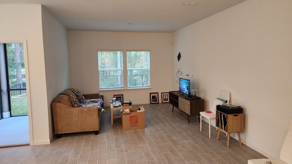 Nearly-new construction (one year old) townhome by Lennar Homes. This end-unit townhome offers one of the most desirable locations in the entire community and is perfect for families. The back overlooks a peaceful, private nature reserve with a pond. Conveniently located near State Road 23 (First Coast Expressway), the home provides easy access to shopping and dining options both north and south of the neighborhood. A beautiful park is also just minutes away. $1875 security deposit, first months rent, one year lease and a standard background/credit/criminal check through American Apartment Owners Association ($40).