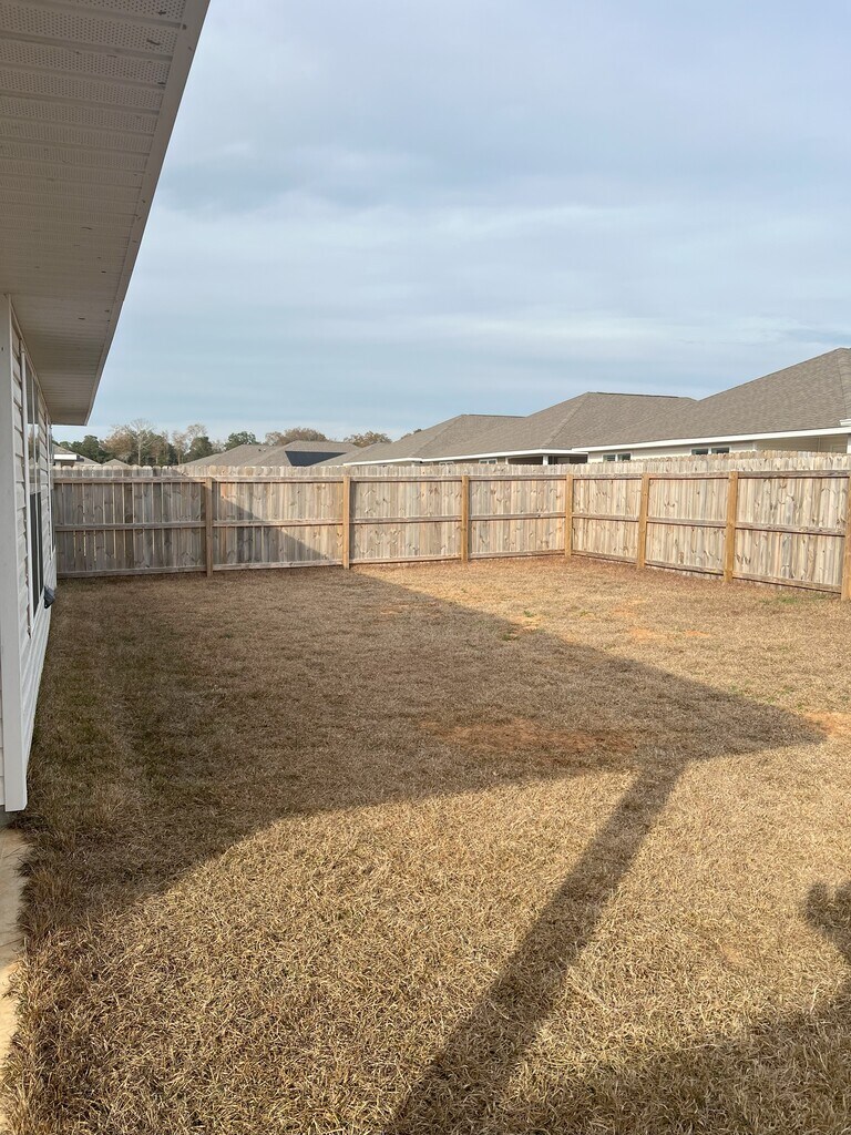 This beautiful 4 bed, 2 bath open floor plan with a 2 car garage home was built in 2023. The neighborhood is quiet, and friendly with children playing outside in the afternoon, people jogging, and great neighbors. The unfurnished rooms are carpeted with a clost and windows. All bedrooms have a coded door lock for privacy and storage. The coded locks can be set so they act like a normal doorknob and don't require a code to enter. The house has an open kitchen with a large island and pantry, unfurnished rooms, a laundry room with a washer and dryer, and a bathroom. The fenced-in backyard has a small covered patio perfect for lounging. Perfect for flight students, the house is 5 min away from I-10, shopping centers, and restaurants. 20 min to Whiting Field, 25 min to downtown Pensacola, 25 min to Pensacola International Airport, 45 min to NAS Pensacola