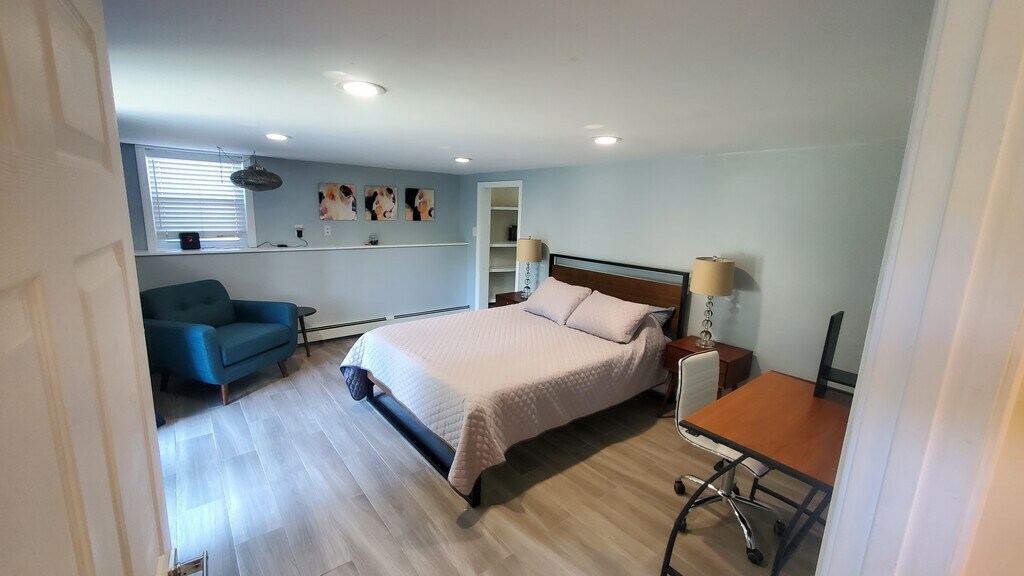 THIS IS A FULLY FURNISHED RENTAL UNIT!! 2 bedrooms, large primary bedroom w/ walk in closet and sliding doors that lead out to the outside patio. Living room, eat in kitchenette, full bath, walk in closet, second bedroom, yard, 900 sq ft, laundry in unit, quiet, everything updated. Tile floors throughout, custom shower, granite countertops. No pets, no, smoking, off street parking, Salem, MA 1.6 miles to the hospital, close to everything Salem has to offer. This is the lower half of a split ranch, you have your own private parking and 2 entrances. Walk out with full size windows and doors and tons of light. All utilities are included, 2 Smart TVs, appliances. First + half month for security, required for move in.