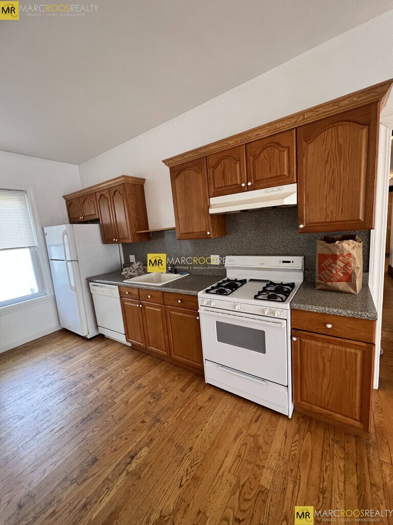Huge renovated unit in Oak Square featuring: - Hardwood flooring throughout! - Fully equipped eat in kitchen w/ pantry! - Bay window in spacious living room! - Generously sized bedrooms! - 2 full bathrooms w/ Jacuzzi tubs! - Energy efficient gas heating! - Coin-op laundry in building! - Central heating & air conditioning! - Private rear deck & shared yard! - Available on site rental parking!